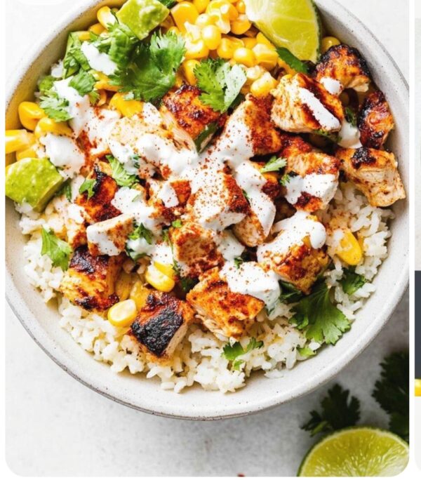 Our Street Corn Chicken Rice Bowl is a Southwest-inspired favorite that packs flavor and fuel in every bite. Juicy, seasoned chicken breast is served over fluffy jasmine white rice and topped with a creamy, zesty street corn relish made with roasted corn, mayo, cilantro, red onion, jalapeño, and cotija cheese. Each bite balances smoky-sweet corn, tangy spice, and creamy richness with high-protein nutrition.