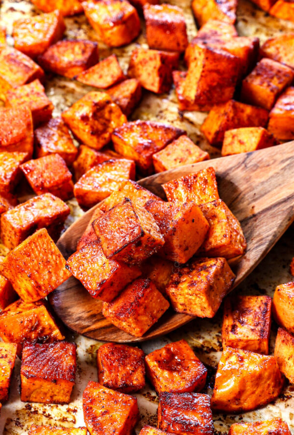 Sweet Potatoes — baked, cubed, and topped with cinnamon, Splenda, and buttery flavor. Wholesome, comforting, and scaled at 1lb cooked.
