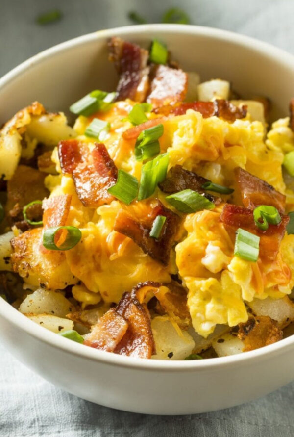 Start your day with a balanced| flavorful meal featuring red roasted potatoes, light & fluffy scrambled eggs, topped with grated cheese, and served with two crispy turkey bacon strips. A perfect mix of protein, hearty carbs, and delicious flavor to fuel your morning! Salsa served on the side